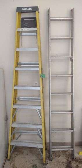 Keller 8' fiberglass and aluminum ladder. Model No. 778. Werner 8' aluminum extension ladder. Model No. D716-2.