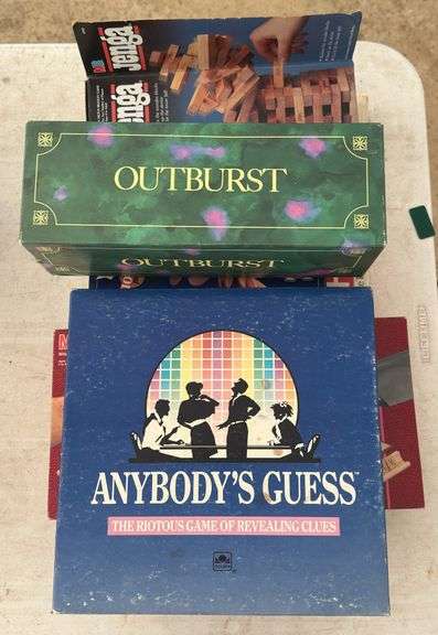Includes Anybody’s Guess, Scrabble, Outburst, Monopoly, Jenga, And The Bottle Topps Game. Largest Is 20” X 10” X 1.5”.
