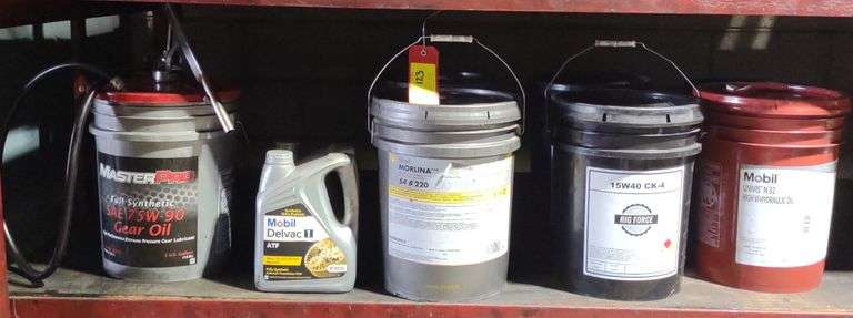 LOT 123 - Mobil Univis N32 High Vi Hydraulic Oil, Shell Morlina S4 B 220 Advanced Synthetic Bearing & Circulat