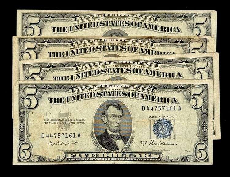 LOT 108 - (4) 1953A U.S. $5 Silver Certificate Blue Seal Federal Reserve Notes