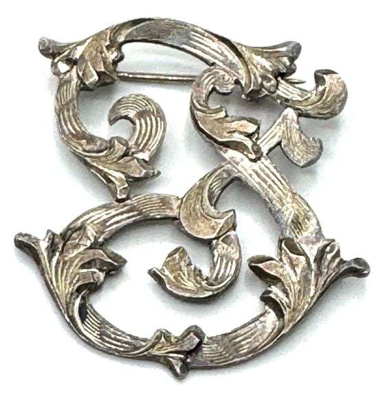 Mexico Sterling Silver Monogram Letter "F" Brooch, silversmith marks on backside (all pictured). Measures 1.5in x 1.25in and has a total weight of 0.35oz