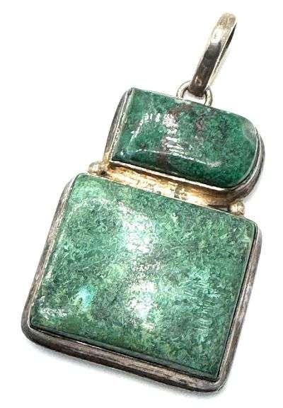 Mexico Sterling Silver and Natural Malachite/Chrysocolla Pendant, stamped Mexico. Measures 1.75in x 1.25in and has a total weight of 0.91oz