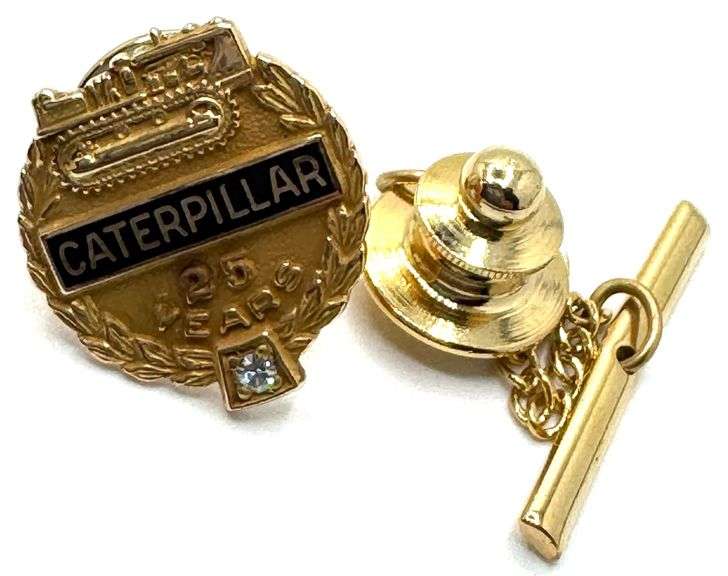 10K Yellow Gold & Diamond Caterpillar 25yr Service Pin, contains one round diamond and has a total weight of 6.6g (Diamond Tested on Presidium Gem Tester II)