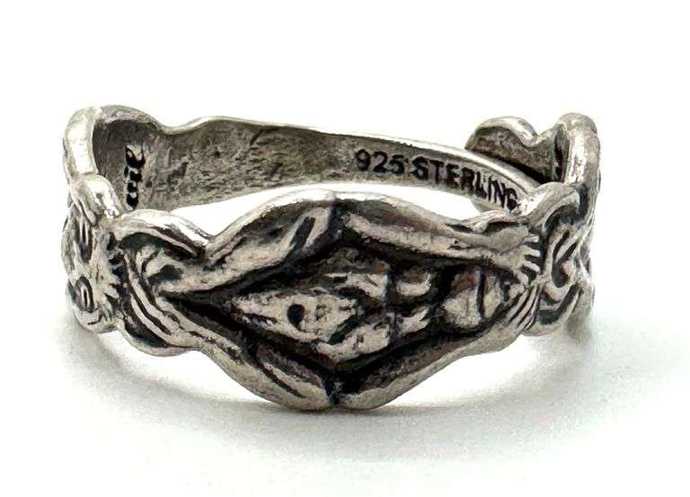 Sterling Silver No Speak No Hear No See Three Wise Monkeys Adjustable Spoon Ring, Size 10 Stamped 925 Sterling and has a total weight of 0.22oz