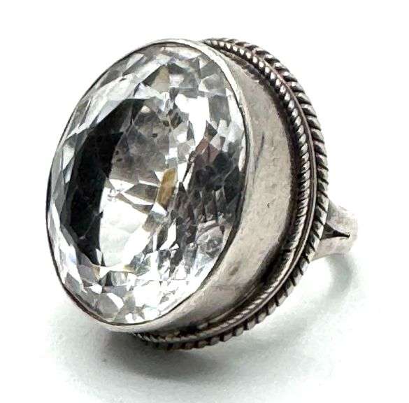 Sterling Silver Large Clear Quartz Statement Ring, Size 11. Unmarked sterling. Total weight of 1.02oz
