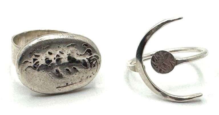 Sterling Silver Sun & Moon Ring (size 9) and Vtg. Signet Ring (Size 10), Both stamped sterling and have a combined weight of 0.62oz