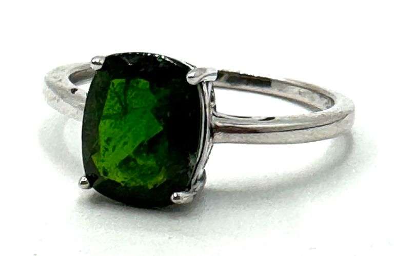 BBJ Sterling Silver and Emerald Dinner Ring, Size 10. Stamped BBJ 925 and has a total weight of 0.09oz