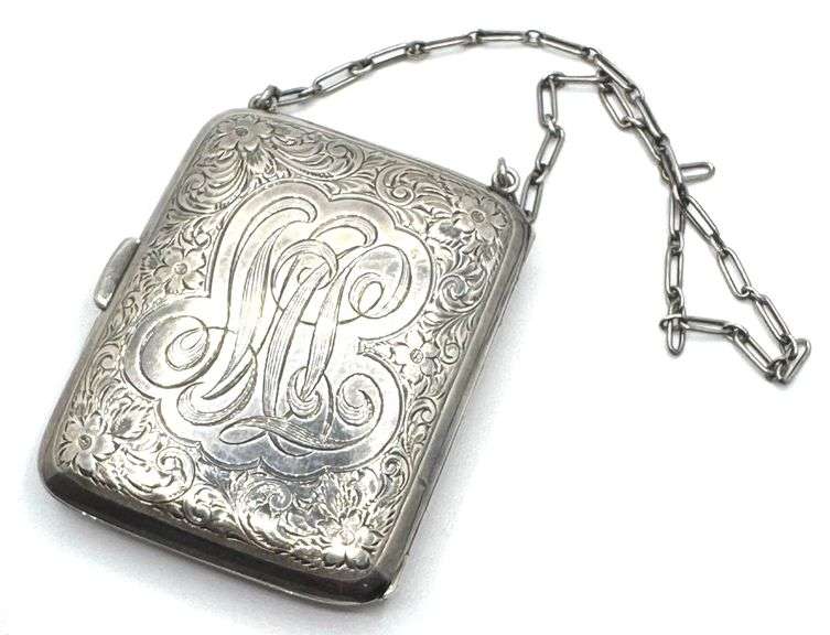 Antique Sterling Silver Victorian Art Deco Monogrammed Compact Coin Purse, stamped Sterling 2629 on inner side rim. Measures 3.25in x 2.5in and has a total weight of 3.84 ozt