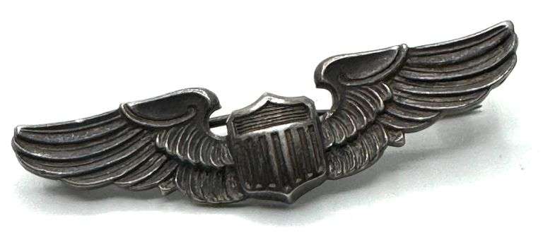 Army Air Forces Sterling Silver Pilot Wings, AMICO. Stamped AMICO Sterling on back side, measures 2in long with a total weight of 0.28oz