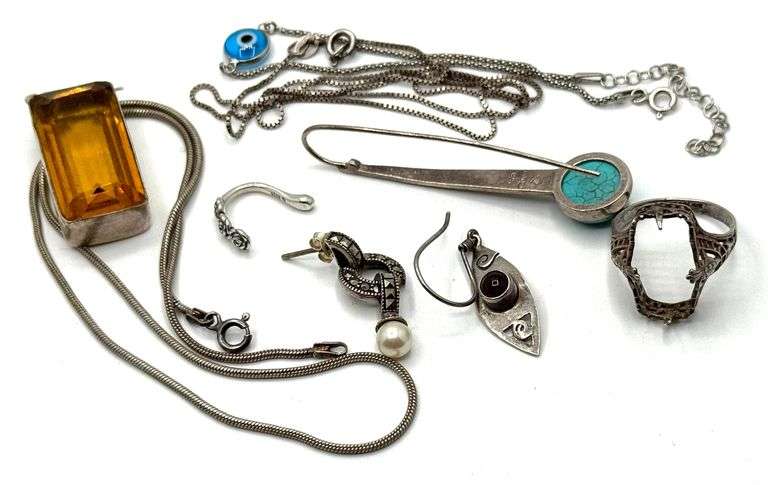 Misc. Sterling Silver Bracelets, Earrings, Ring Lot (scrap Lot). All items are stamped sterling or 925 and have a total weight of 1.09oz