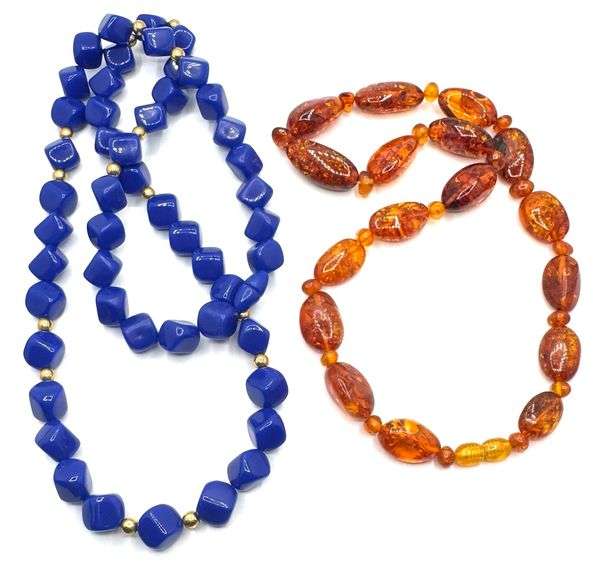 LOT 583 - Baltic Amber Beaded Necklace, and AVON Blue Beaded Necklace