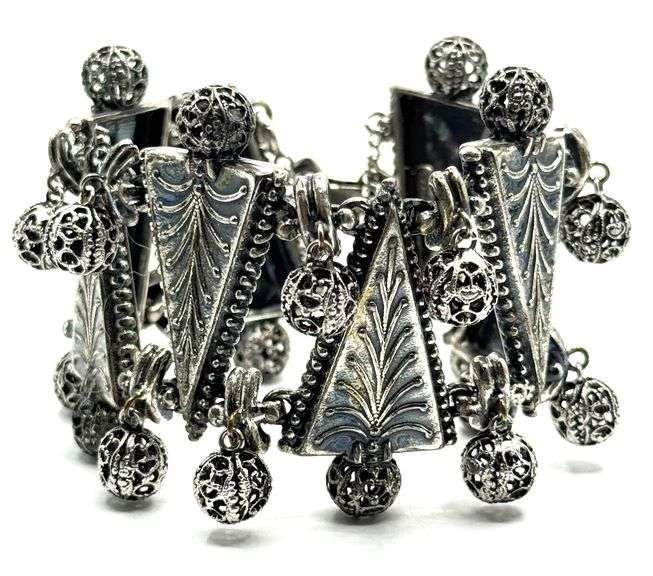 LOT 550d - Vintage Schiaparelli Silver-Tone Art Nouveau Detailed Bracelet