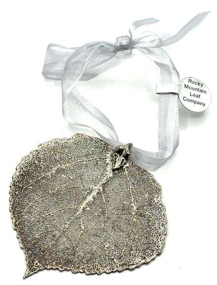 Real Leaf Fine Silver Pendant, Rocky Mountain Leaf Company. Measures 2.75in x 2.75in and has a total weight of 0.23oz