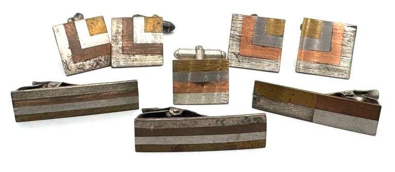 RBZ Mexican Sterling Silver Mid-Century Tie Clips and Cufflinks, all stamped made in Mexico (Total combined weight of 1.86oz