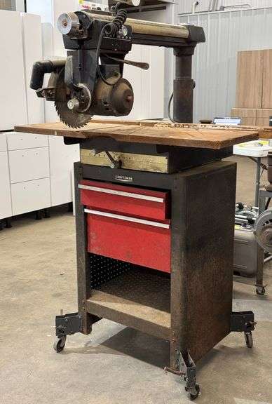 Craftsman Radial 100 Arm Saw on Storage Rolling Stand, Includes contents of drawers (pictured)