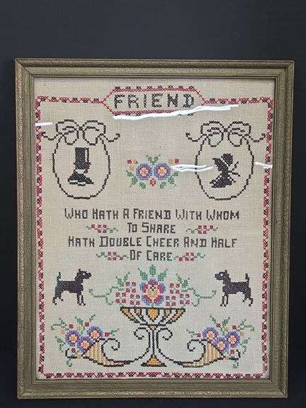 LOT 611 - (G) Framed “Friend” Cross-Stitch Work