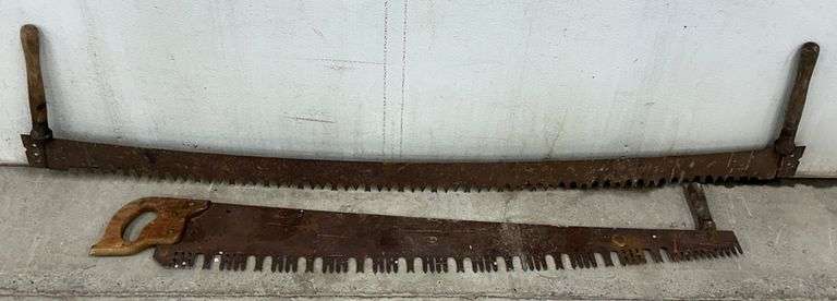 LOT 766 - (M) Primitive Two-Man Crosscut Handsaws