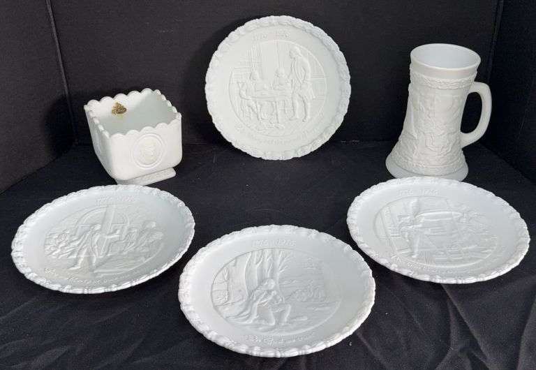 LOT 527 - (K) Fenton Bicentennial Satin Milk Glass Commemorative Dish Ware