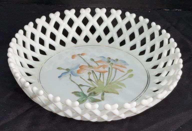 LOT 528 - (K) Challinor Taylor Floral Painted Lattice Edge Fruit Bowl