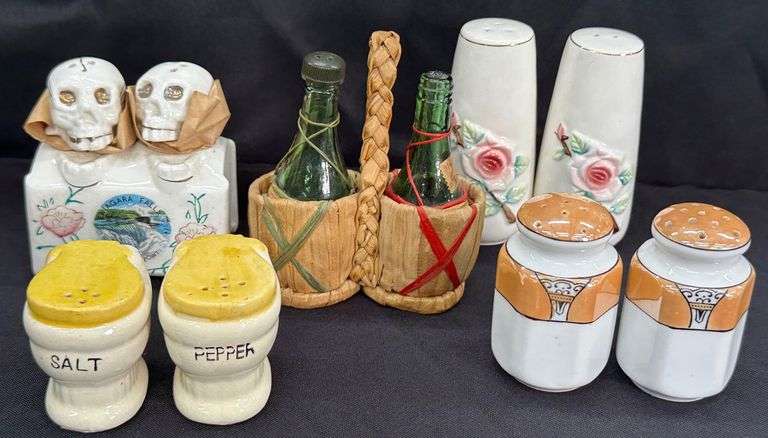 LOT 549 - (K) S&P Shaker Sets Includes Chianti Style, Skull, Toilet, And More