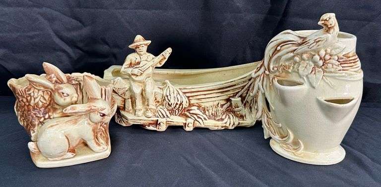 Includes Calypso Line Banana Boat Planter, Peacock Strawberry Planter, And Rabbits & Stump Planter