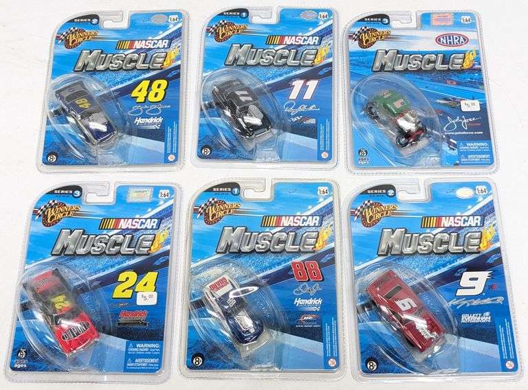 LOT 157 - Lot Of 6 NASCAR Muscle Machines 1:64 Die-Cast Cars On Blister Cards