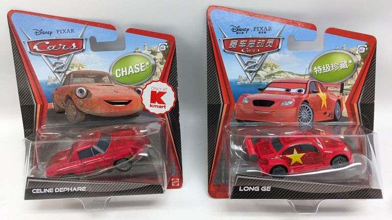 LOT 163 - 2) Disney Pixar Cars 2 Die-Cast Chase Cars On Blister Cards / Celine Dephare Long GE / Sold times th