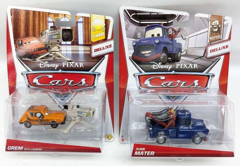LOT 165 - 2) Disney Pixar Cars Deluxe Die-Cast Cars On Blister Card / Grem Ivan Mater / Sold times the money