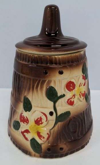 LOT 337 - Vintage American Bisque Butter Churn Cookie Jar with Hand Painted Flowers (Excellent Condition)