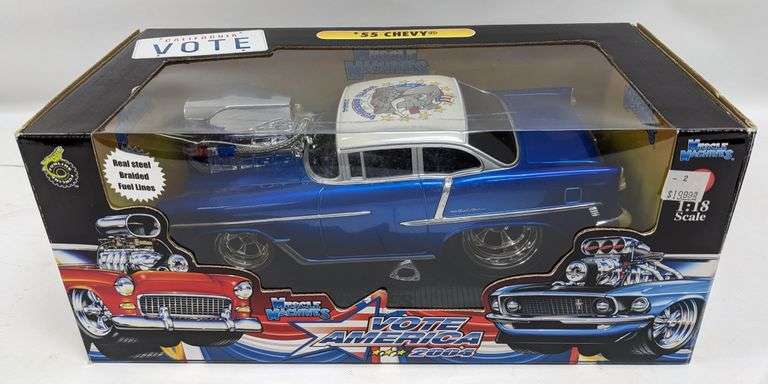 LOT 74a - 1:18 Die-Cast Muscle Machines 2004 Vote For America 55 Chevy Bel Air In Box