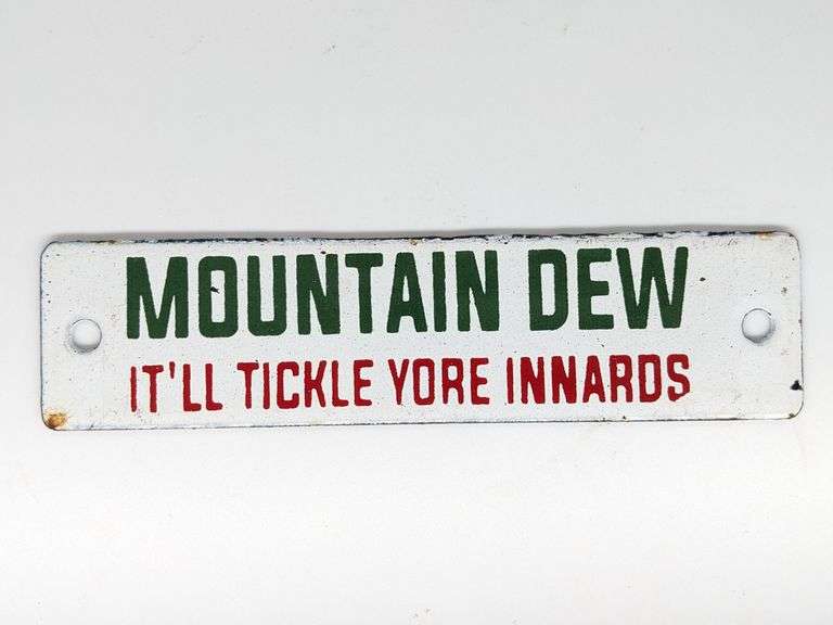 LOT 401 - Porcelain Mountain Dew Soda Advertising Sign / Measures approximately 6in across
