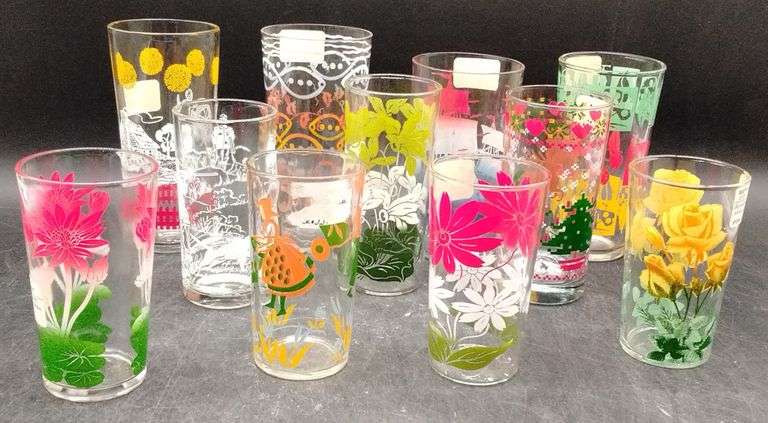 LOT 3748 - (Q) Vintage Mid Century Libby Glasses Floral, Etc.6.5 " Tall