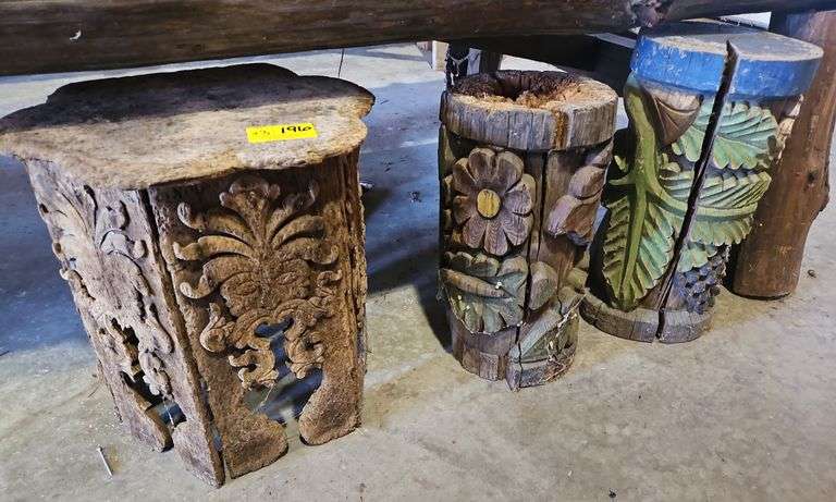 LOT 196 - Contents Under Table including 3 Decorative Stumps