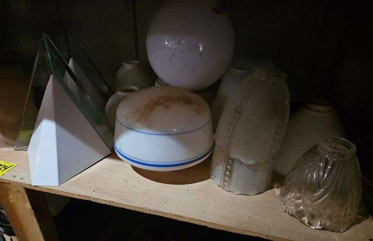 LOT 824 - Contents of Shelf Including Various Lights and Light Shades.