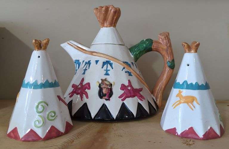LOT 796 - Fine Ceramic Indian Chief Teapot & Salt & Pepper Shakers