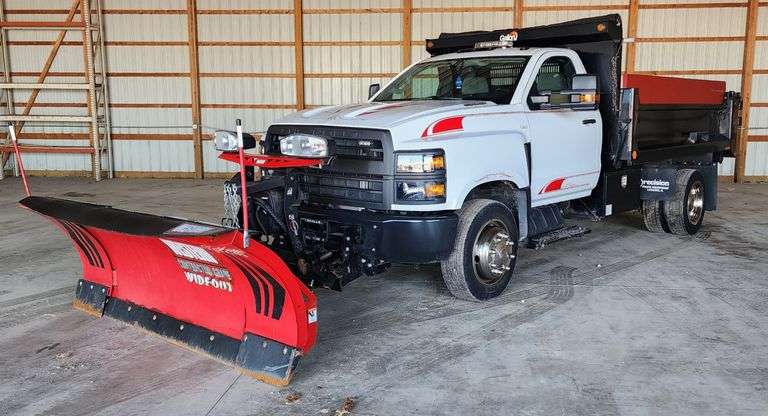 1999 Kenworth T300 single axle dump truck w/ Bonnell salt spreader, 8.3L Cummins, 6 speed Allison automatic transmission, electric tarps, only 51,000 miles, two-owner truck that is in excellent condition, always been stored inside; 2023 Ford Super Duty XL F550 w/ Tafco Scott Aluminum Dump Body, 7.3L V-8, gas, only 4700 miles, 10 speed automatic, twin tool boxes, never driven in salt or rain and always stored inside; 2020 Chevrolet Silverado 4500HD dump truck, dual rear wheels, 6.6L Duramax diesel, Galion 11' steel landscape bed, 8'-10' Western Wide Out XL snow plow, 2-wheel drive, automatic transmission, Meyer tailgate salt spreader, pull tarp, stainless wheel covers, strobe light; 2018 Dodge Ram 5500 w/ Stainless Landscape Dump Bed, Cummins 6.7L diesel, Fisher XV2 snow plow 9' 6" w/ wings, 4wd, automatic transmission, Henderson tailgate spreader, custom tool boxes, back-up camera, tarp, 49k miles; 2012 Ford F-450 Super Duty Truck Dump Truck w/ Fisher Plow, 6.7L diesel, pull tarp, landscape bed, 2 wheel drive, 9' plow, salt spreader, 65k miles; 2013 Dodge Rame 3500 Dump Truck w/ 8' Fisher V-plow, 8 cylinder Hemi, gas, automatic transmission, 9' x 7' dump bed, salt spreader, 55k miles; 2014 Chevrolet Silverado 3500HD Dump Truck w/ Fisher 9' snow plow, V-8 6.0L gas, automatic transmission, 11' steel landscape bed, strobe light, 4 new tires, 81k miles; 2007 Chevrolet Silverado 2500 HD, regular cab, long bed, 6.0L gas, 2wd, 146K miles, custom 8' lawnmower ramp attachment; 2022 Diamond C Road Clipper 35' gooseneck trailer, max ramp, 30' deck, 5' beavertail, LED lights, tool box, winch receiver prep package, 2 speed landing gear, like new; 2006 Mac-Lander 20' flat bed landscape trailer, tandem axles, ramp; 2007 Behnkr Equipment Trailer, ramps, tandem axle, 16' deck